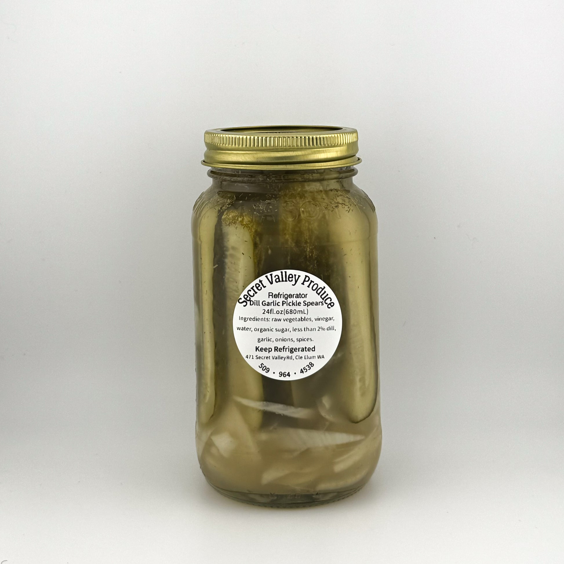 Crisp, fresh, and absolutely the best-pickled cucumber you’ve ever or never tasted! Secret family recipe was developed by Jenna over the last 15-plus years. Ingredients: Cucumber, vinegar, salt, sugar, garlic, onion, dill.